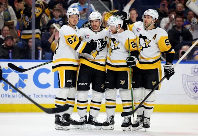 Buffalo, New York - home of many historical events. The assassination of President William McKinley, followed by the inauguration of “The Lion” - Theodore Roosevelt. One of the first cities to be powered by electricity. The local professional football team was the first (and is still the only) team to play in four consecutive Super Bowls. Buffalo, N.Y. was the site of another first on Thursday evening - Sidney Crosby, Captain of the NHL’s Pittsburgh Penguins, became the first player in the history of the National Hockey League to average a point-per-game for 20 consecutive seasons, surpassing Wayne “The Great One” Gretzky’s record of nineteen seasons in a row (he fell short in year 20 at the age of 38). Most of the focus for the 2024-2025 NHL season has been on Washington Capital’s Alex Ovechkin chase to break Gretzky’s goal scoring record of 894 career goals - and while the goal record will be an unbelieveable historic achievement, Crosby’s legacy of dominant consistency for two straight decades cements him as a Top 3 player of all time (I am of the mind that there is absolutely no one anything can do to pass Gretzky and Mario Lemieux as the 1 and 2 greatest players in NHL history, even if their statistical records are supressed - those two have achieved mythic status among hockey historians).