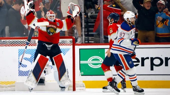 For the first time since 2009, the championship round of the Stanley Cup playoffs will feature a rematch of the two final teams from the previous year’s finals - such a rematch is rare, having only happened twice over the last 40+ years (2008 and 2009 with the Pittsburgh Penguins and Detroit Red Wings, and then in 1983 and 1984 with the New York Islanders and these same Edmonton Oilers). A rematch alone would be interesting enough given the rarity, but given the dramatics of last year’s finals the stage is even brighter the second time around. Last year featured its own dramatic redemption arc. After losing the 2023 Stanley Cup Finals, the Florida Panthers roared to a 3-0 series lead. They then teetered on the brink of a historic collapse, nearly becoming the first team to blow such a lead in a championship series, before ultimately vanquishing the Oilers in Game 7 on home ice.The almost historic comeback that didn’t happen was thanks to the herculean effort of one man…